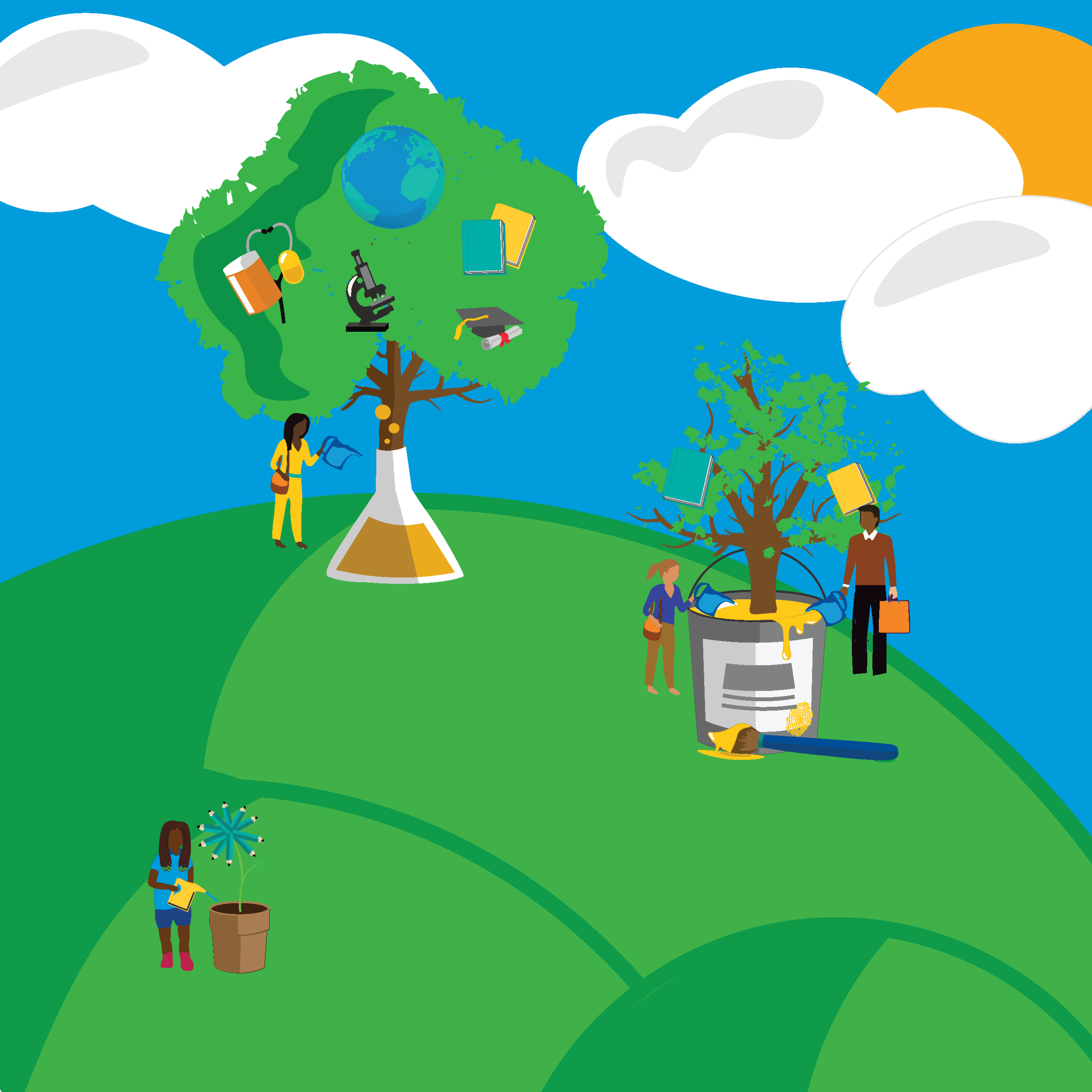 After multiple rounds of concepting seen in the three images above, this was an emblem I created for the KPMG Community Impact team that emphasizes the 4 tenants of their work — Literacy, Health, Technology, and Mentorship. We developed the image from conception to execution, after various iterations and edits. It was a very collaborative effort involving translating feedback into the visual in an abstract, yet understandable way. We landed on this image of a tree because of KPMG Community Impact’s dedication to Lifelong Learning. The tree is often synonymous with knowledge, growth, and development, three areas KPMG Community Impact seeks to encourage within the community through the four areas.